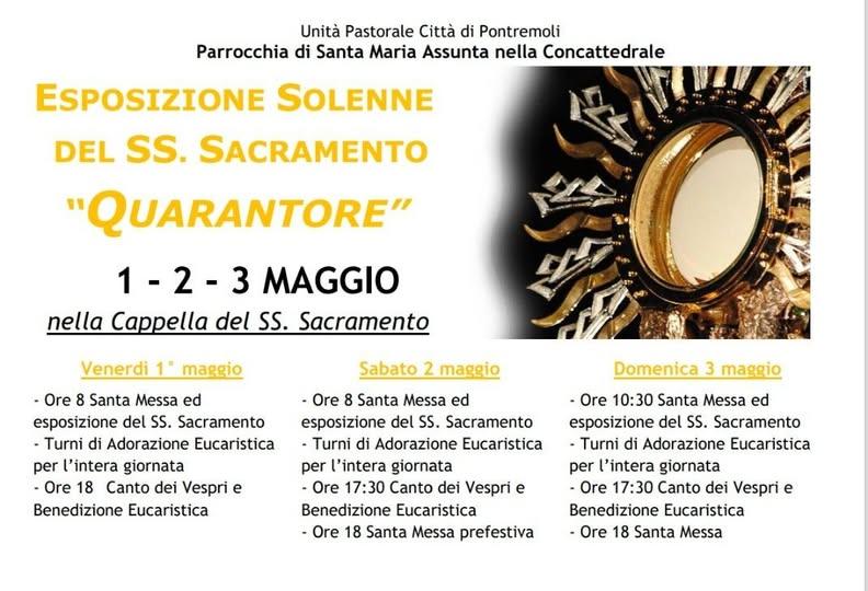 “Quarantore” – esposizione solenne del SS. Sacramento in Duomo dal 1° al 3 maggio, secondo il seguente calendario: